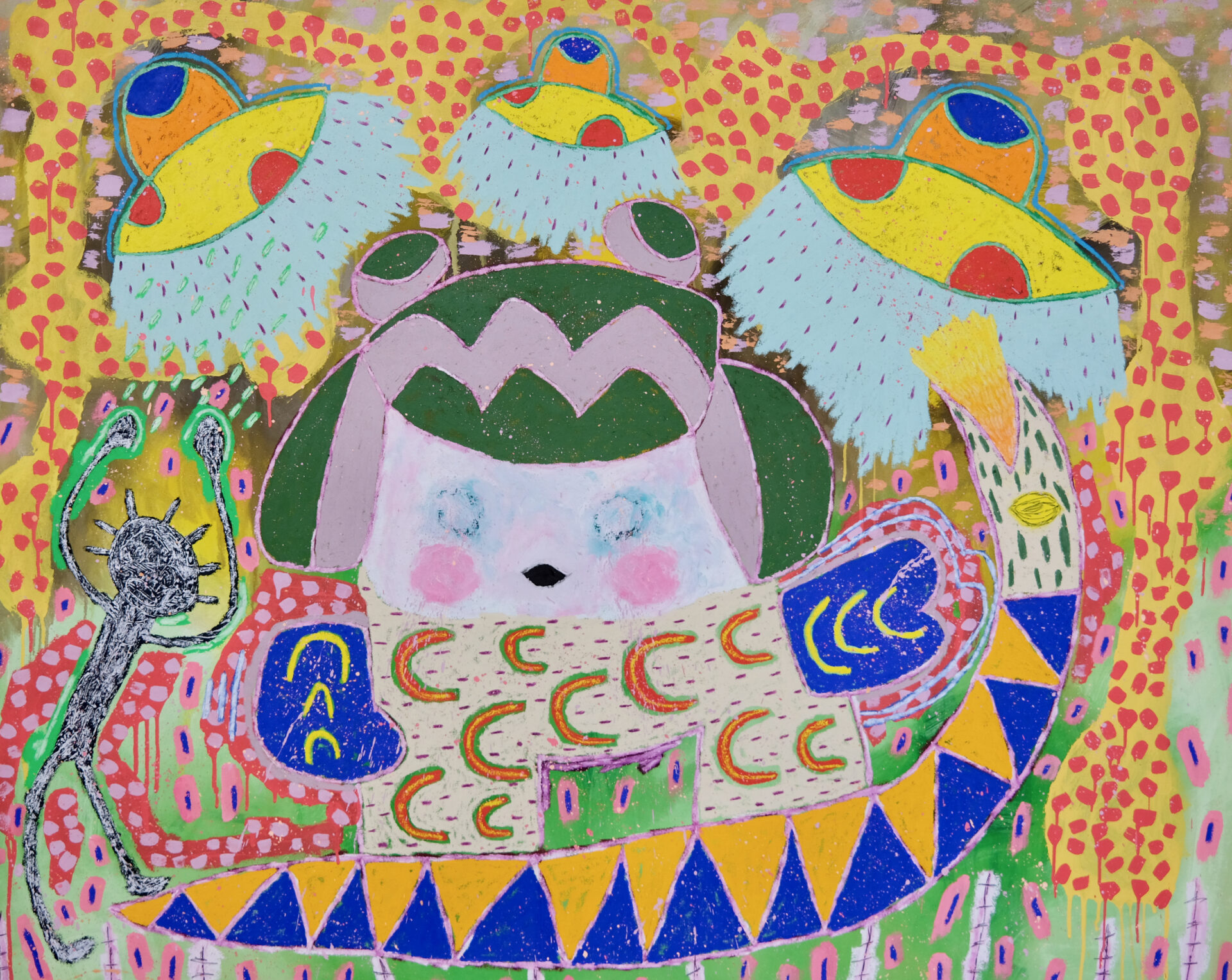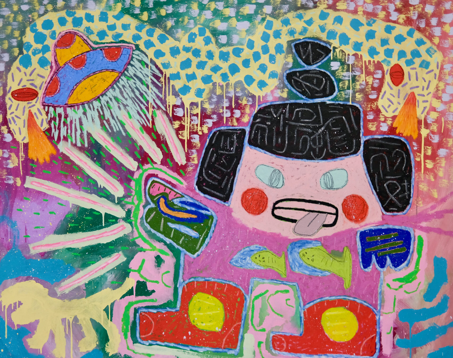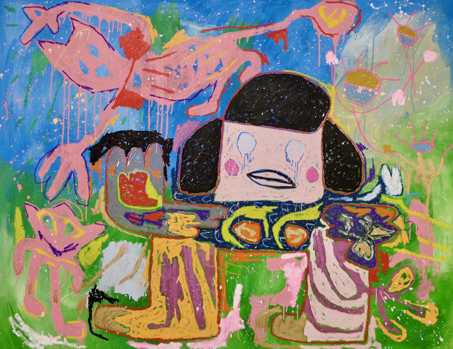 Adam Handler employs a tactile blend of oil stick, pencil, and acrylic to craft neo-expressionist works that bridge the gap between "naive" figurative art and classical sophistication. His signature style features uninhibited shapes and a vibrant, soulful energy that transforms the canvas into a dynamic space for introspection and whimsy.