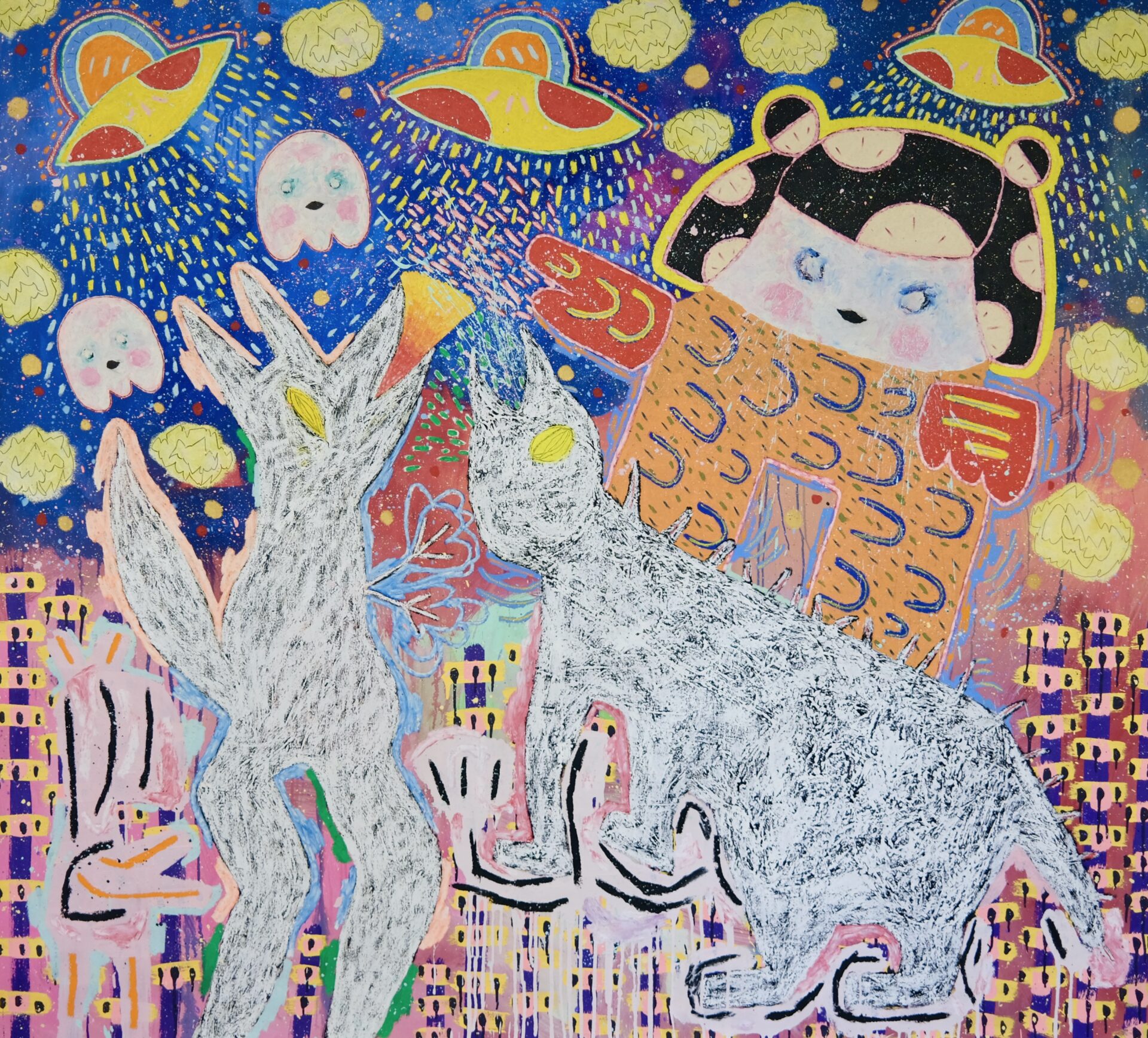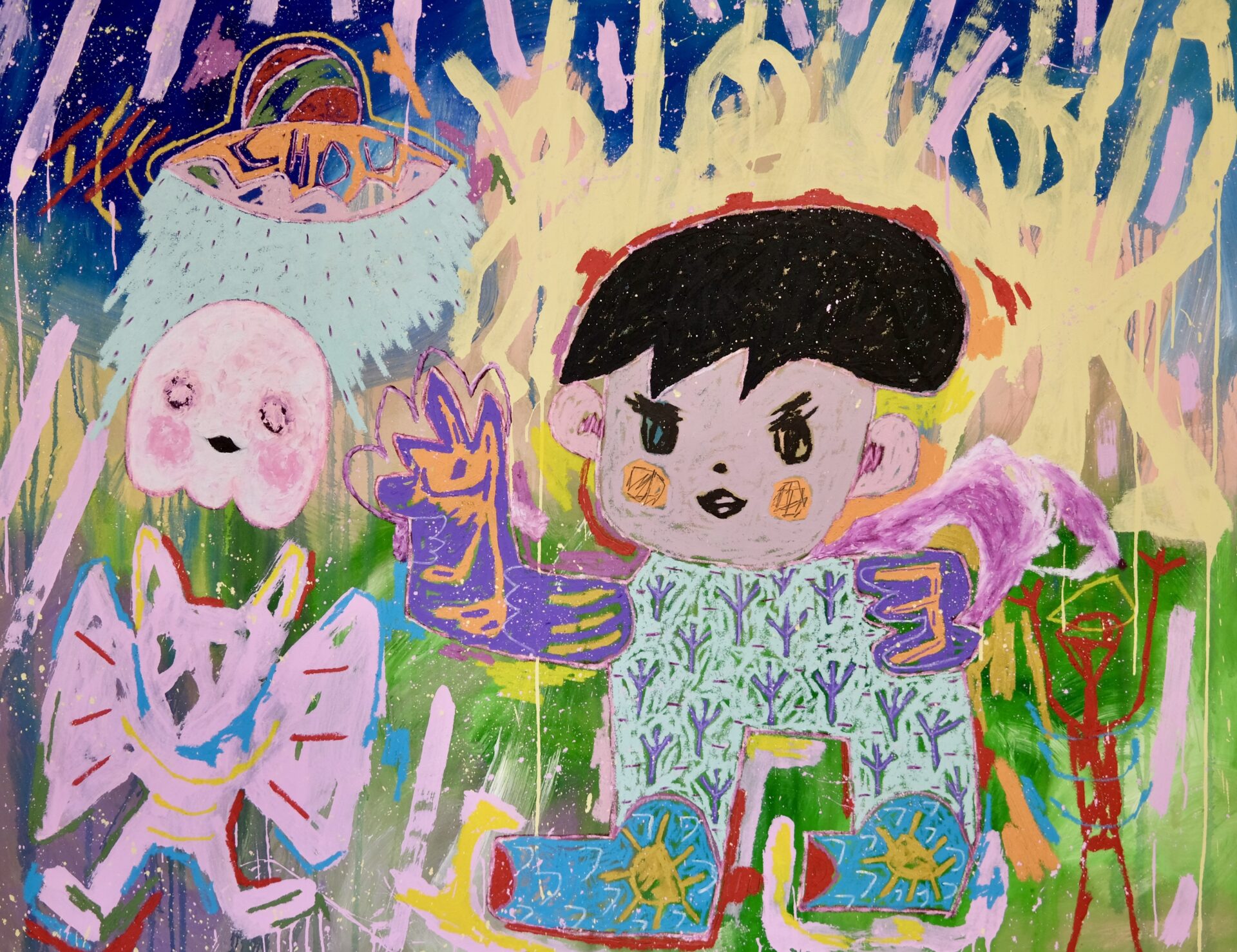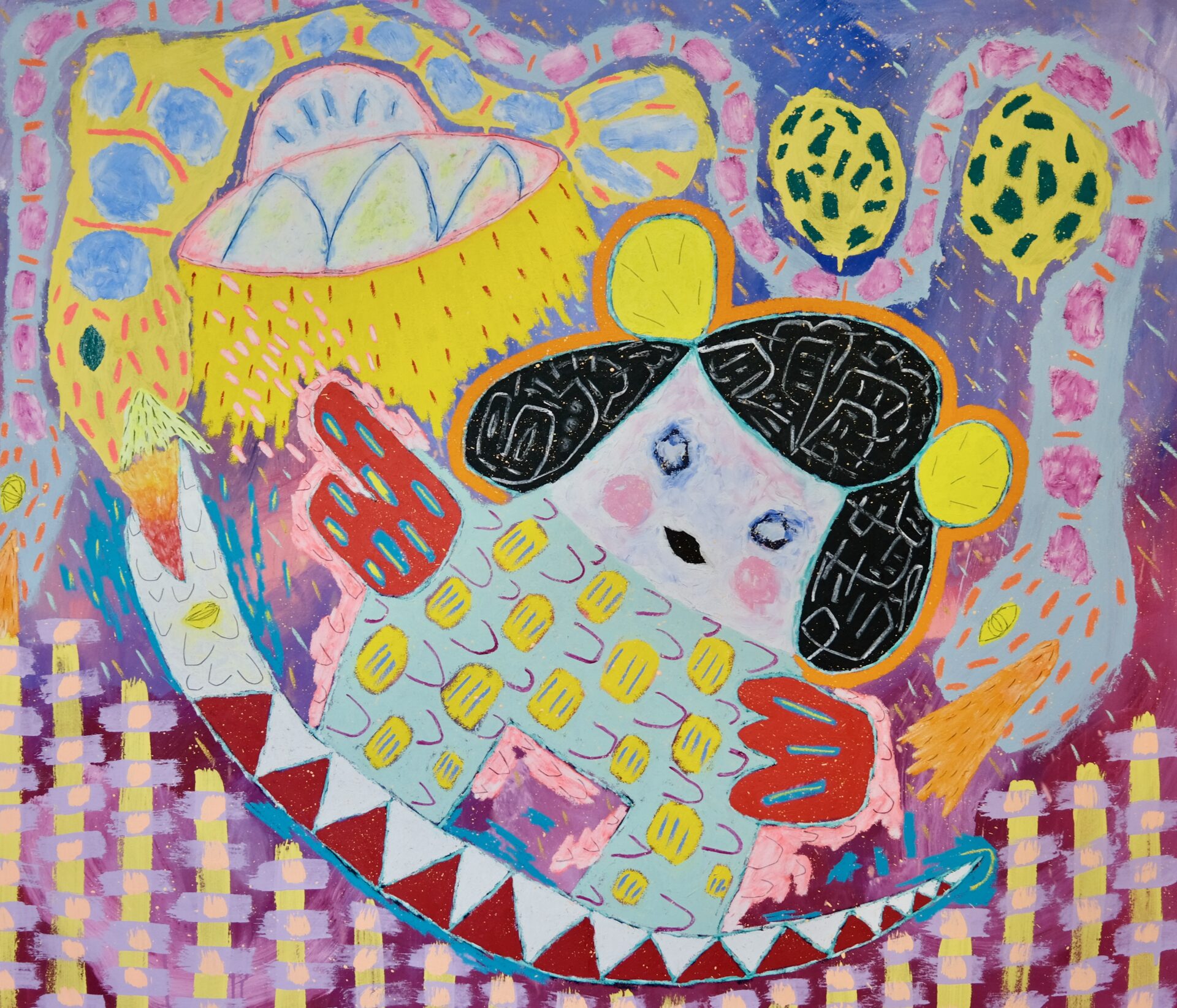 Adam Handler employs a tactile blend of oil stick, pencil, and acrylic to craft neo-expressionist works that bridge the gap between "naive" figurative art and classical sophistication. His signature style features uninhibited shapes and a vibrant, soulful energy that transforms the canvas into a dynamic space for introspection and whimsy.