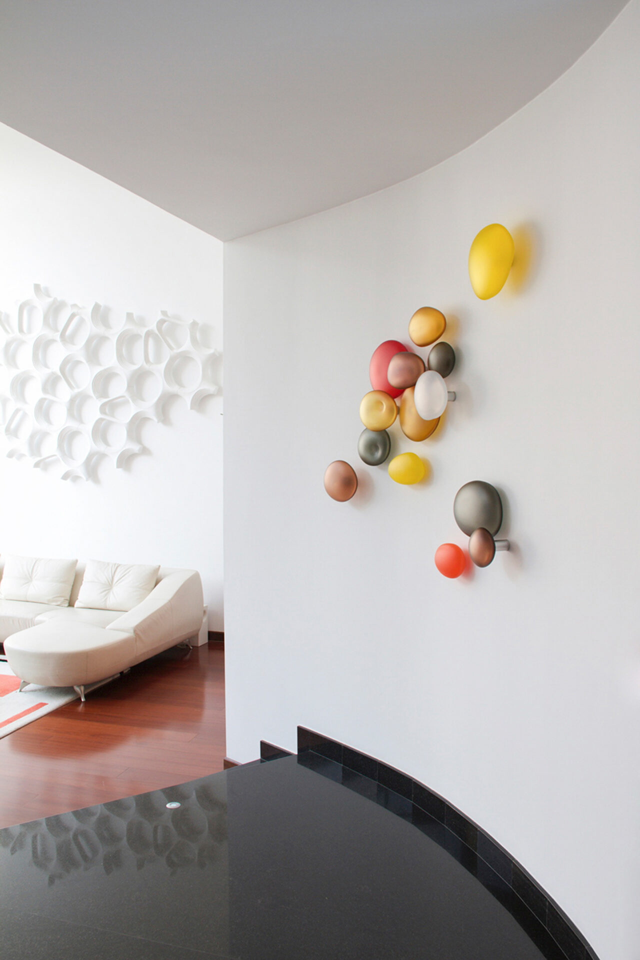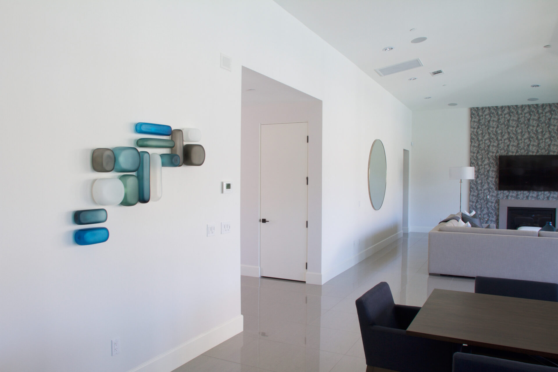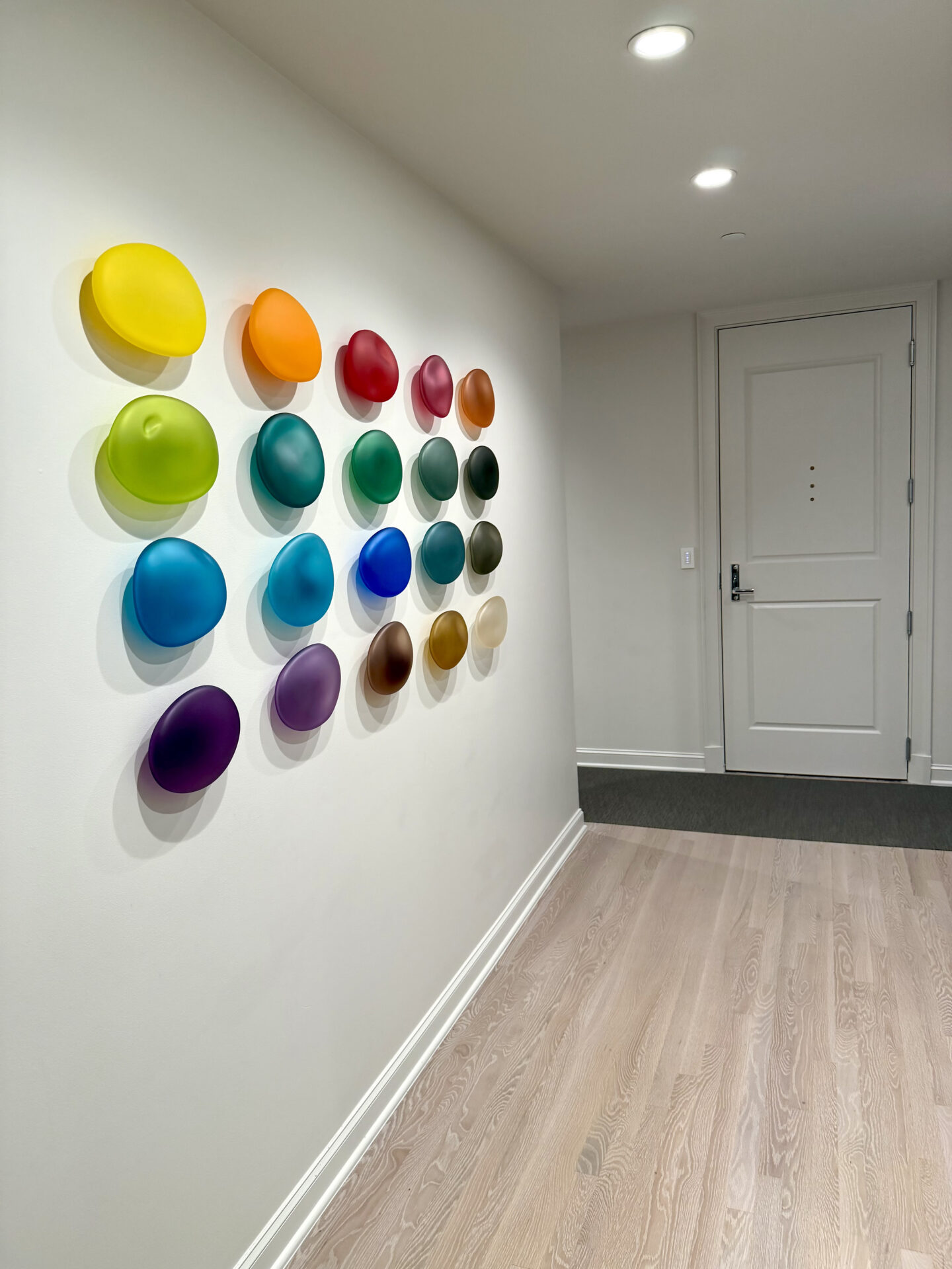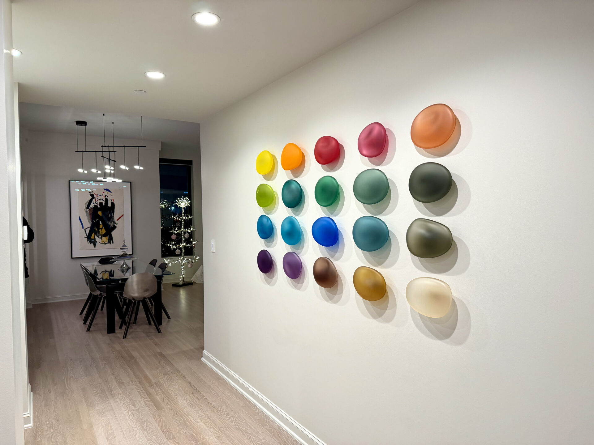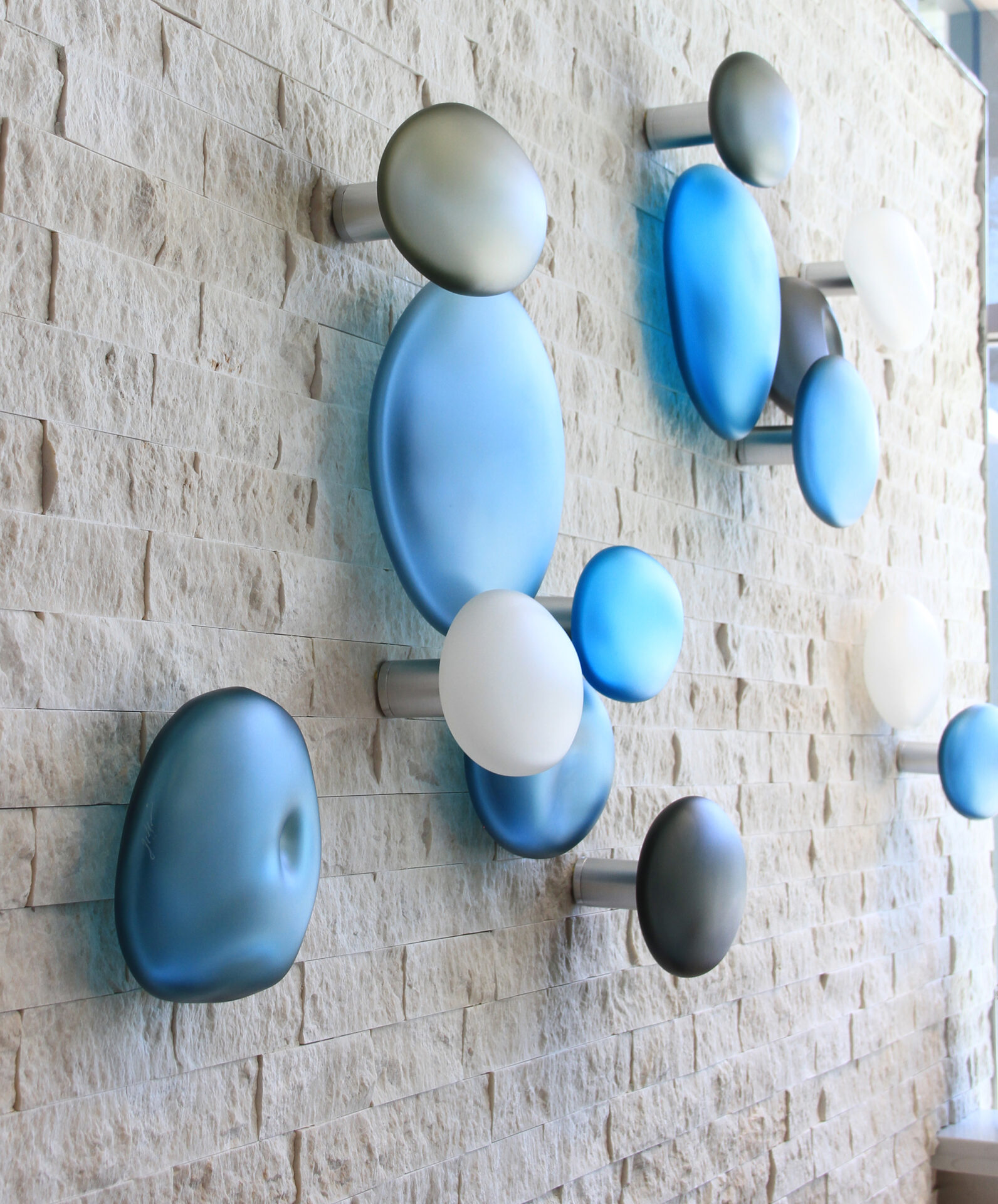 Christopher Jeffries creates contemporary, modern, hand blown glass wall sculptures.