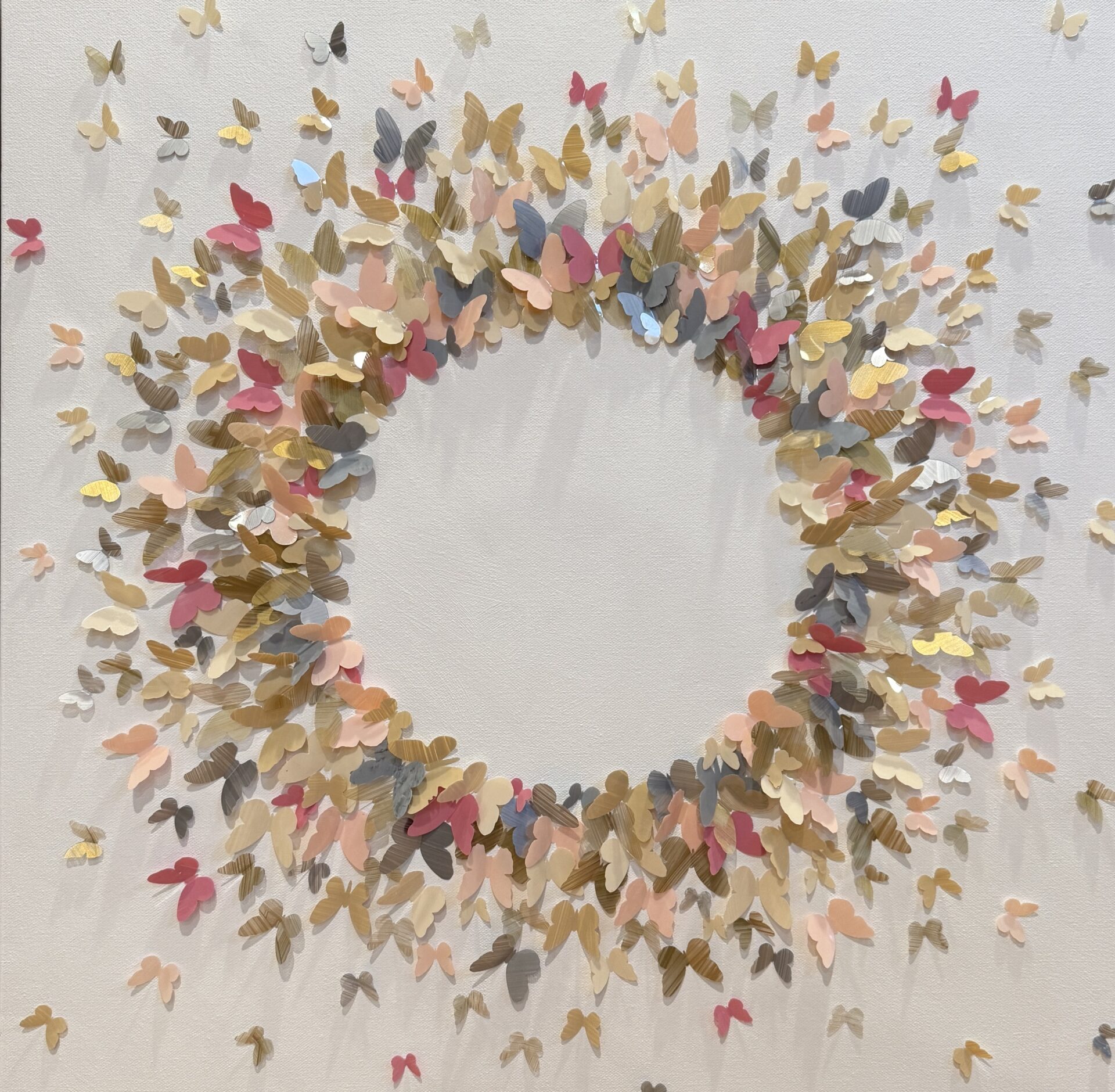 Liz Green uses mixed media, including oils, acrylics, and acetates, to create sculptural butterfly works that celebrate the wonder of transformation and the way light brings art to life.