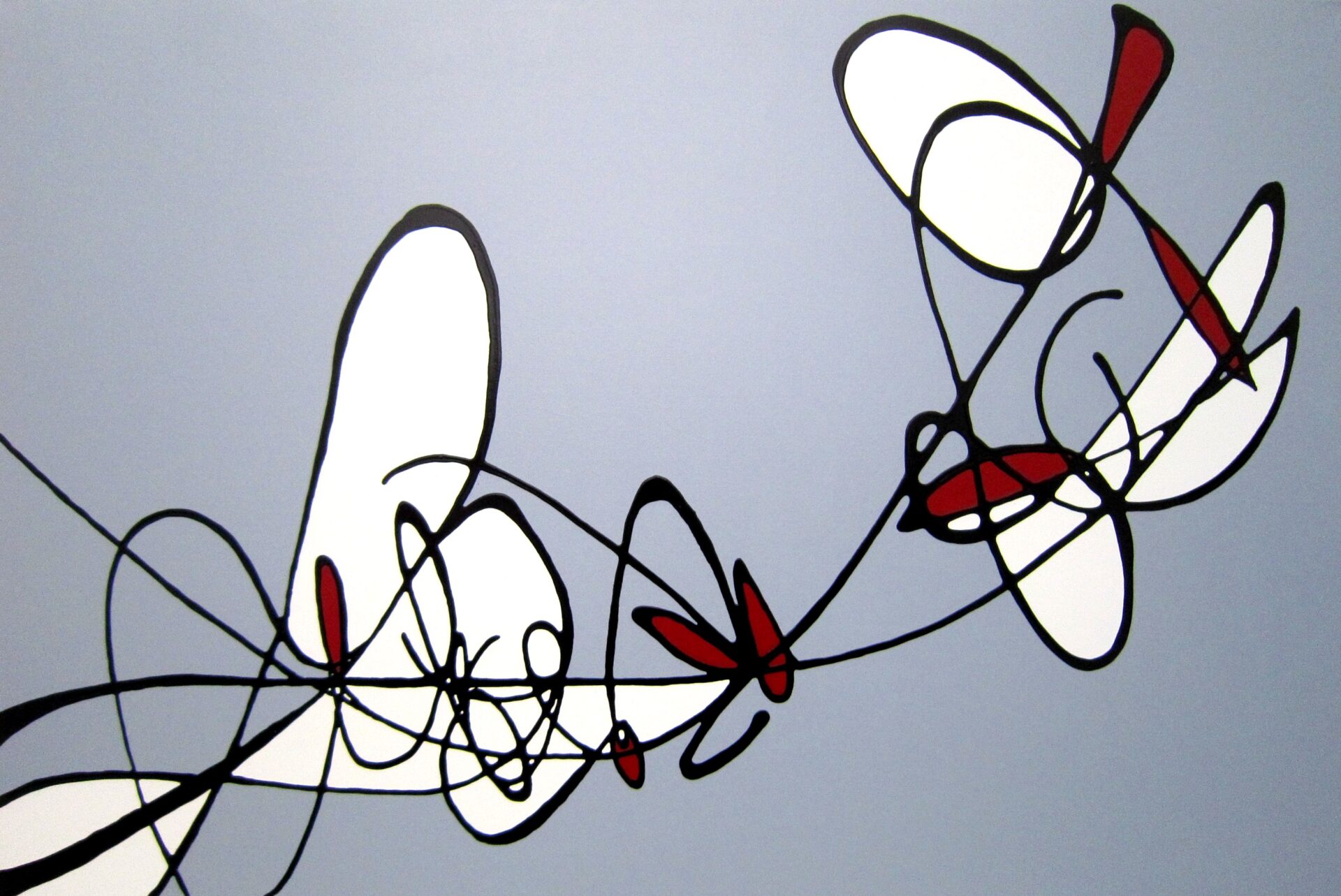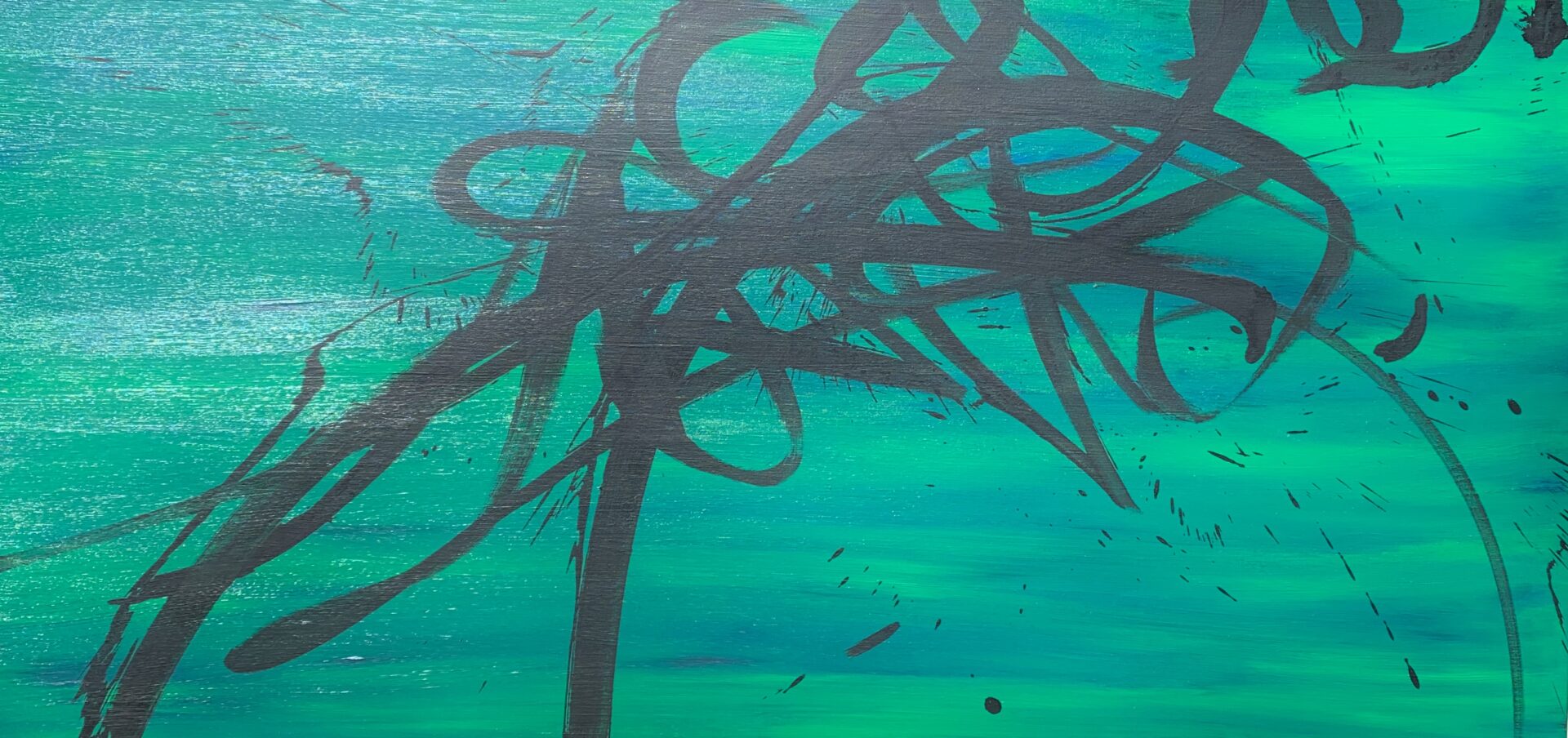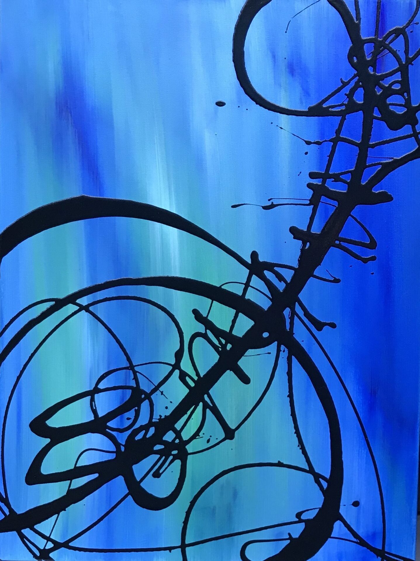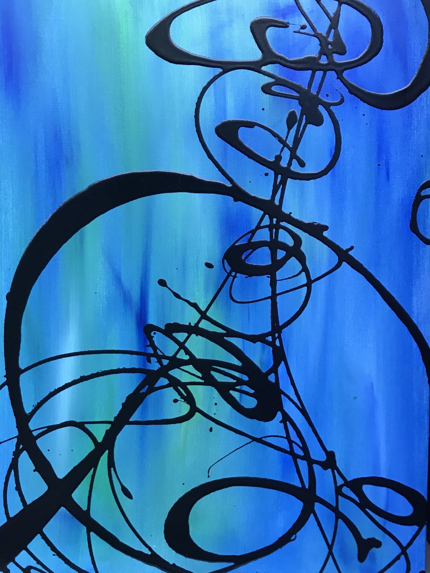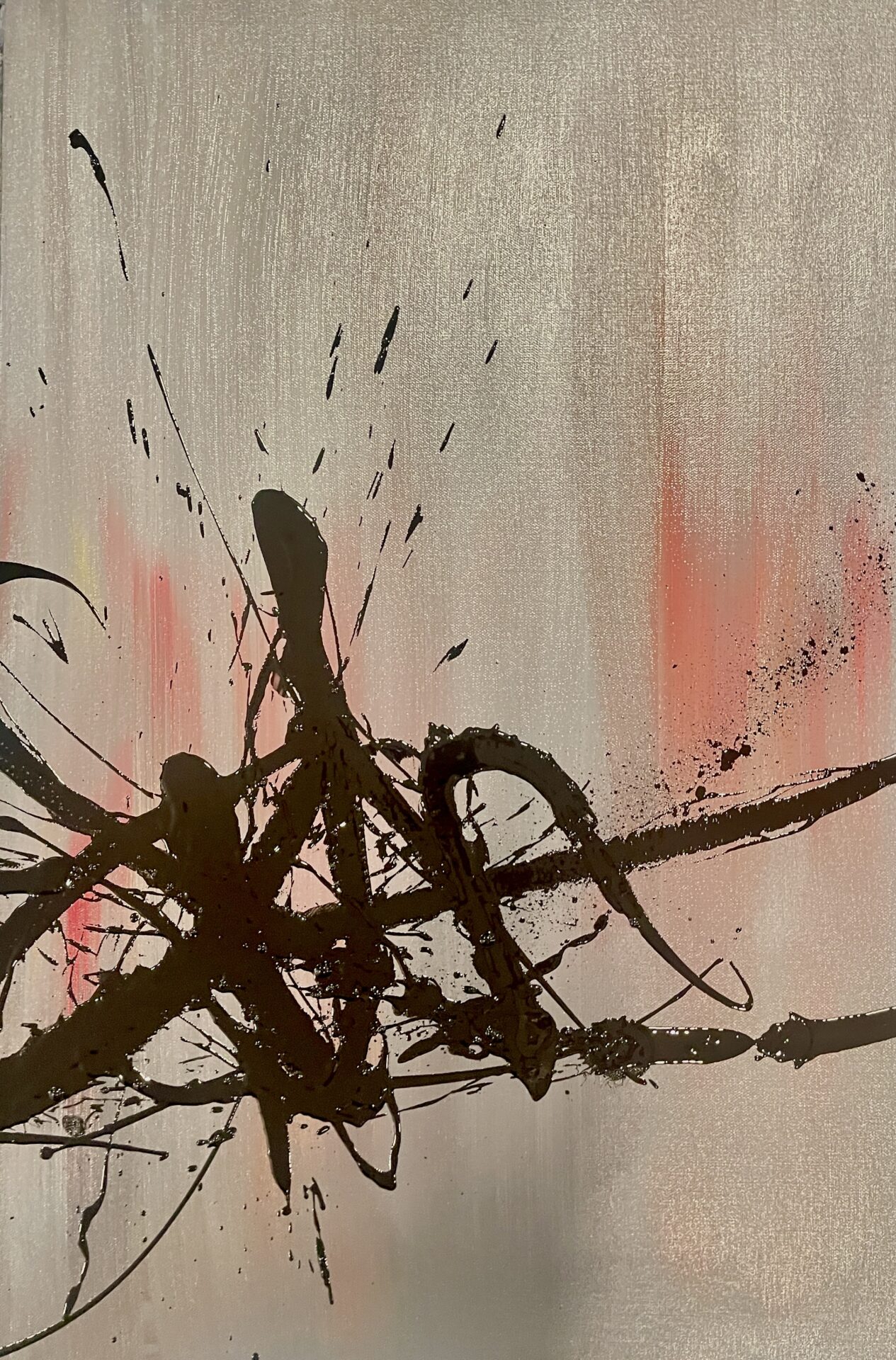 Michael Ingui works with mixed media, including acrylic, pouring mediums, and ink, to create abstract pieces that combine gestural lines with expressive layers of color to create compositions that feel simultaneously musical, rhythmic, and atmospheric.