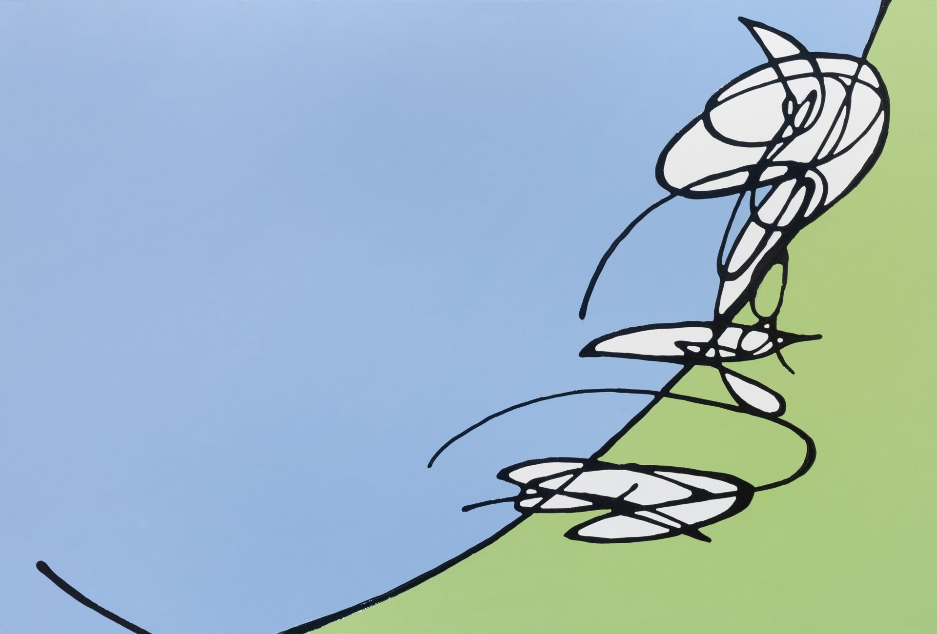 His practice bridges hand-drawn gesture and layered color, producing compositions that feel both musical and spatial.